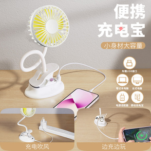 夹式 小风扇学生宿舍上下铺床头静音USB可充电床上用无线可夹小型夹子便携迷你夹扇充电宝二合一桌面2025新款